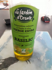 Pendant ce temps, pelez la gousse d'ail et couper le poivrons en petit dés (garder quelques morceaux pour la présentation). Les mixer avec l'huile d'olive.